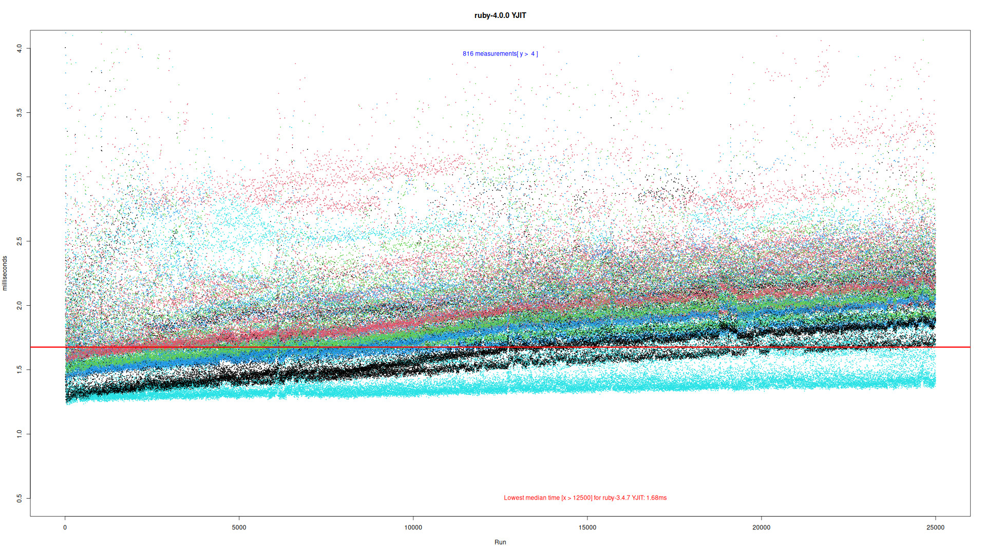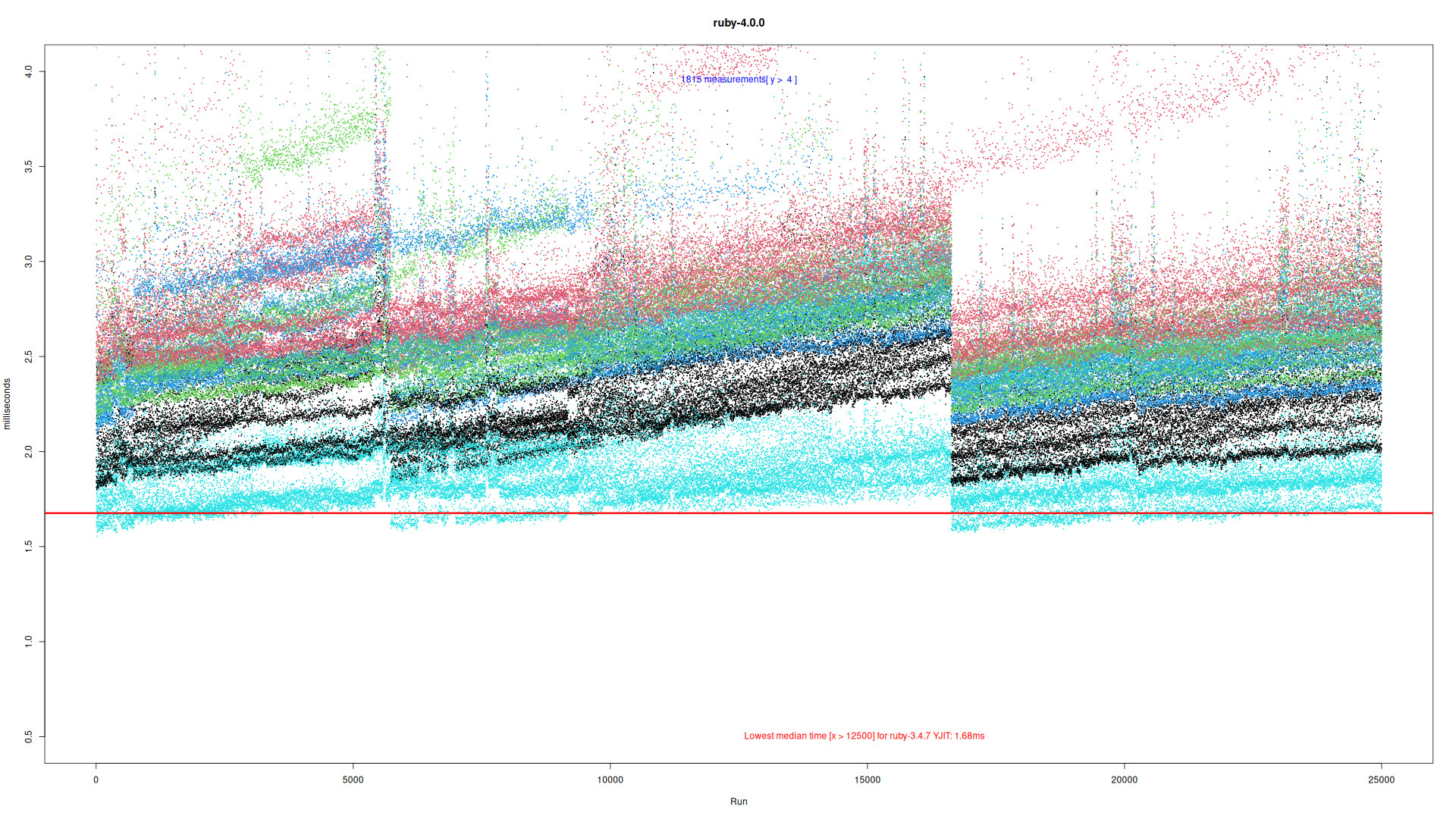When running my RubyMeasureResponsetime tool (https://github.com/easydatawarehousing/ruby_measure_responsetime) on Ruby 4.0.0-preview2, a slow but steady performance degradation is measurable.